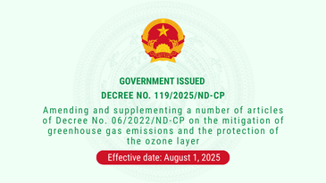 On June 9, 2025, the Government issued Decree No. 119/2025/NĐ-CP amending and supplementing a number of articles of Decree No. 06/2022/NĐ-CP dated January 7, 2022 on mitigation of greenhouse gas emissions and protection of the ozone layer.